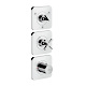 sa 3 rozetami 12 x 12 cm 3 spotrebiče súčasné použitie viacerých výtokov súčasné použitie 2 spotrebičov kombinácia termostatu Highflow s uzatváracím ventilom a prepínacím ventilom Quattro pre ovládanie 3 spotrebičov bezpečnostná poistka na 40 ° C nastaviteľné obmedzenie teploty materiál: kov rozmer prívodov: DN20