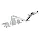Štvorotvorová batérie na okraj vane s záchytným rukoväťami.